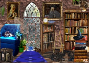 Ravenclaw Quiet Corner – digital fantasy collage using Publisher, Harry Potter Fan Art by Antonia Sara Zenkevitch